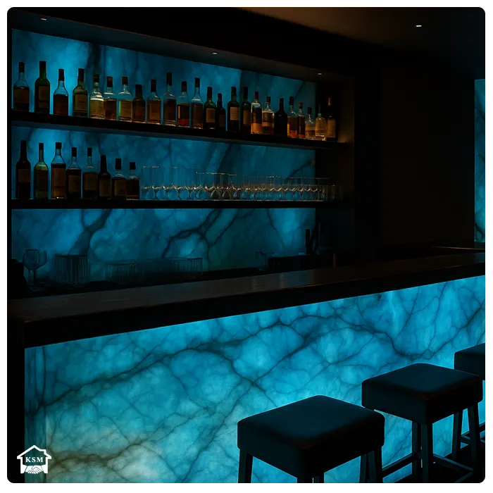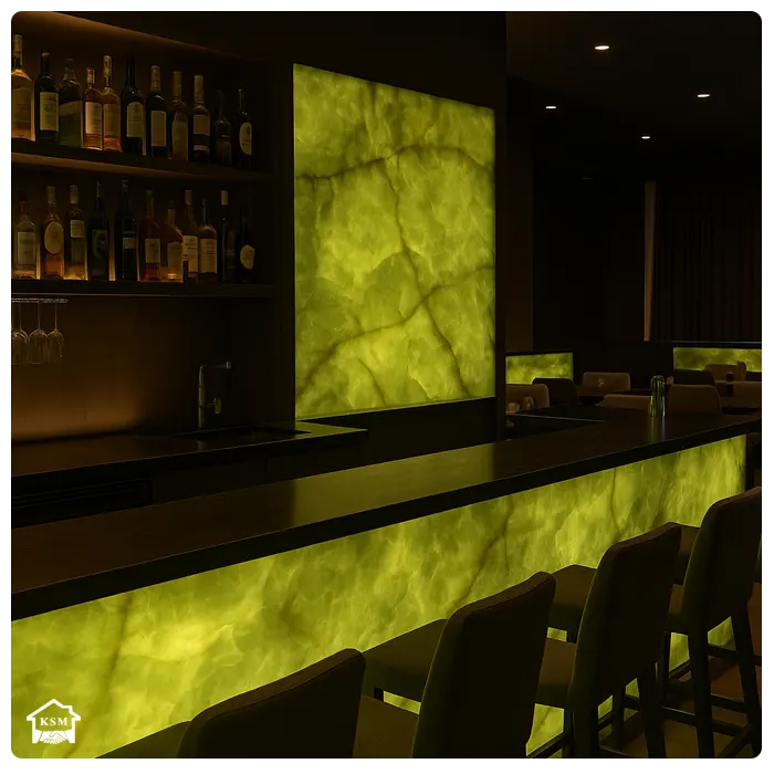 - Backlit onyx bar tezgahı ve restoran arka panel uygulaması